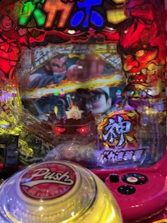初打ちノーカスタムで、点滅保留から当該でボタンバイブ、激熱の文字、馬鹿ZONE、赤保留で鬼ヶ島に行かず無理ゲー演出、もちろんハズレ。