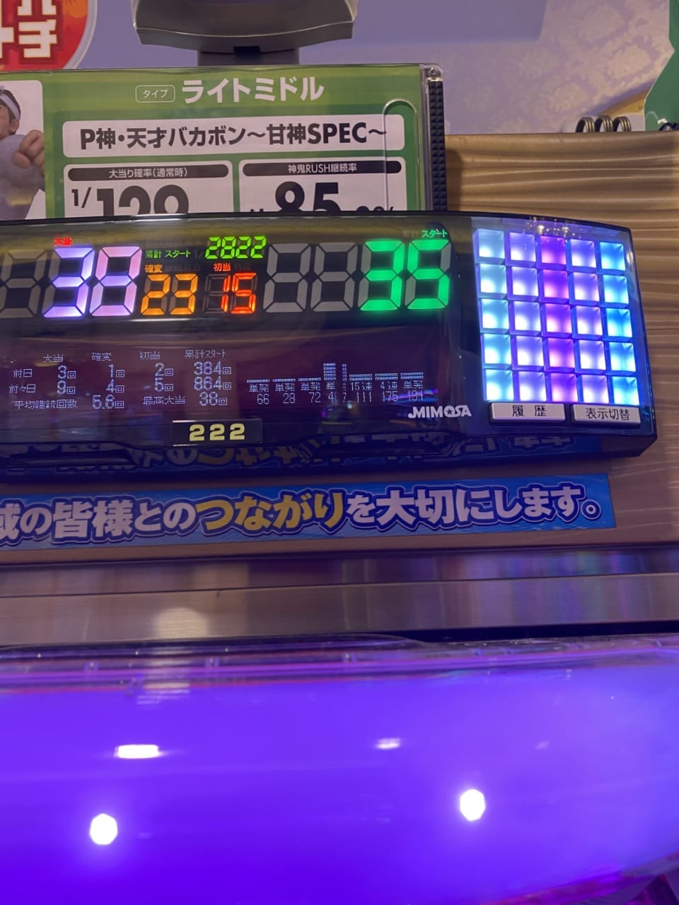 ただ上位にさえ入ればちゃんと継続率も高く運良く上位を取って万発出てくれたので、良かったですが、横の奥様の履歴が単単単3単みたいな感じで、やはり継続は難しい印象でした。