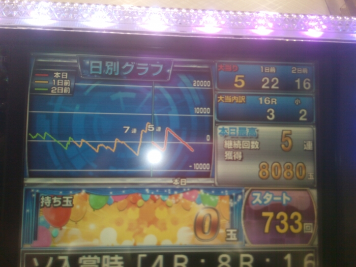 1k22回転でした。たまにやればこのていたらく。なにがボーダーだよ。オカルトおばさん大勝利。演出がよく、キャラもいい。曲なんか文句なし。だけど初あたり重いから店が頑張ったところでどうしょうもないやないけ。
