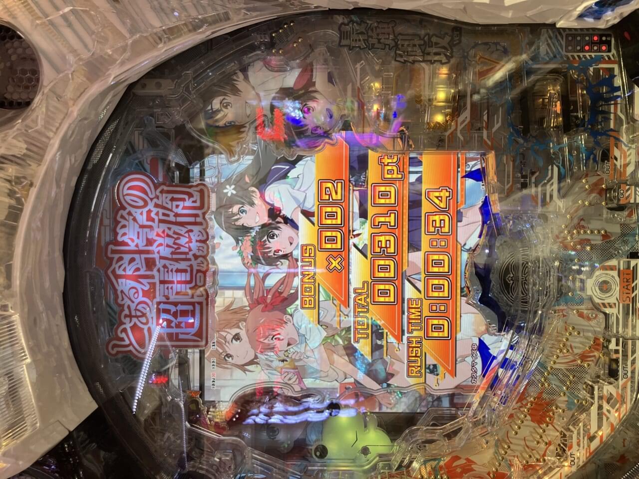 通常時299回転消化でCZ「一撃チャンス」に突入(遊タイム)。1回転で35%の振り分けを取れば最強御坂RUSHに突入。残り65%は約200個を獲得し通常時へ。