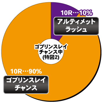 ゴブリンスレイチャンス中のアルティメットラッシュ突入時はソクゲキが発生し次回大当り濃厚。ソクゲキも含めたアルティメットラッシュの継続率は約90.4%。