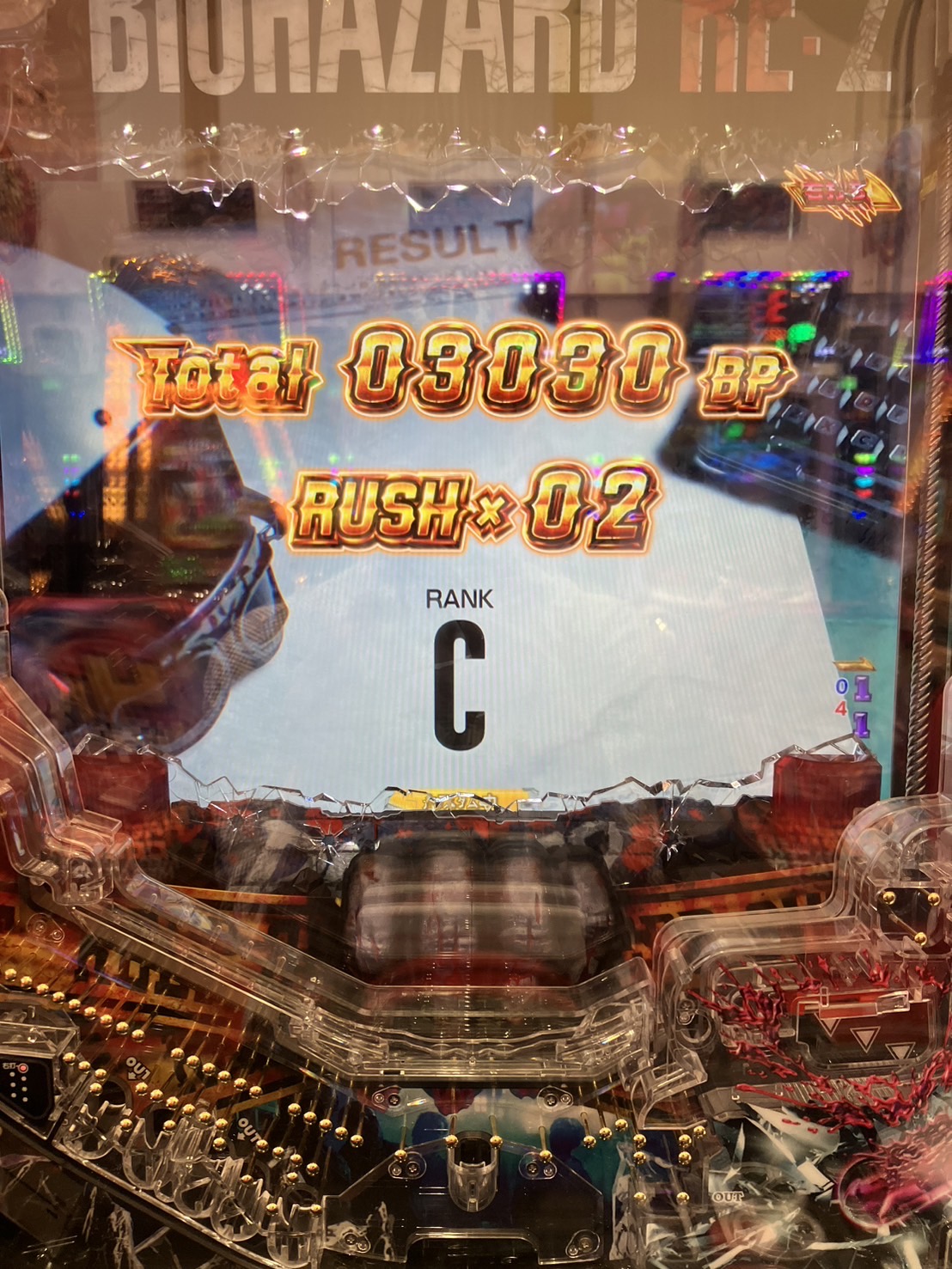 嫌な予感は的中してラッシュ開始すぐにヘソ保留を消化して即当たり。2ラウンドのボーナスとなりました。一応タイラント演出はなかったので右打ち中ヘソ消化時の当たりはラッシュ確定なのかも知れませんがかなり損します。というか先バレしててくれればこんな事態にはならなかったので残念でなりません。