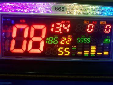 運が良く、時短50回転での引き戻しが8割以上でしたのでかなりST入りました。7図柄での当たりは1度も無し。ヘソ初当たり初回ラウンド時に右上アタッカーを観ていれば時短かSTかの判別は容易に解りました。ST時はV入賞してます。