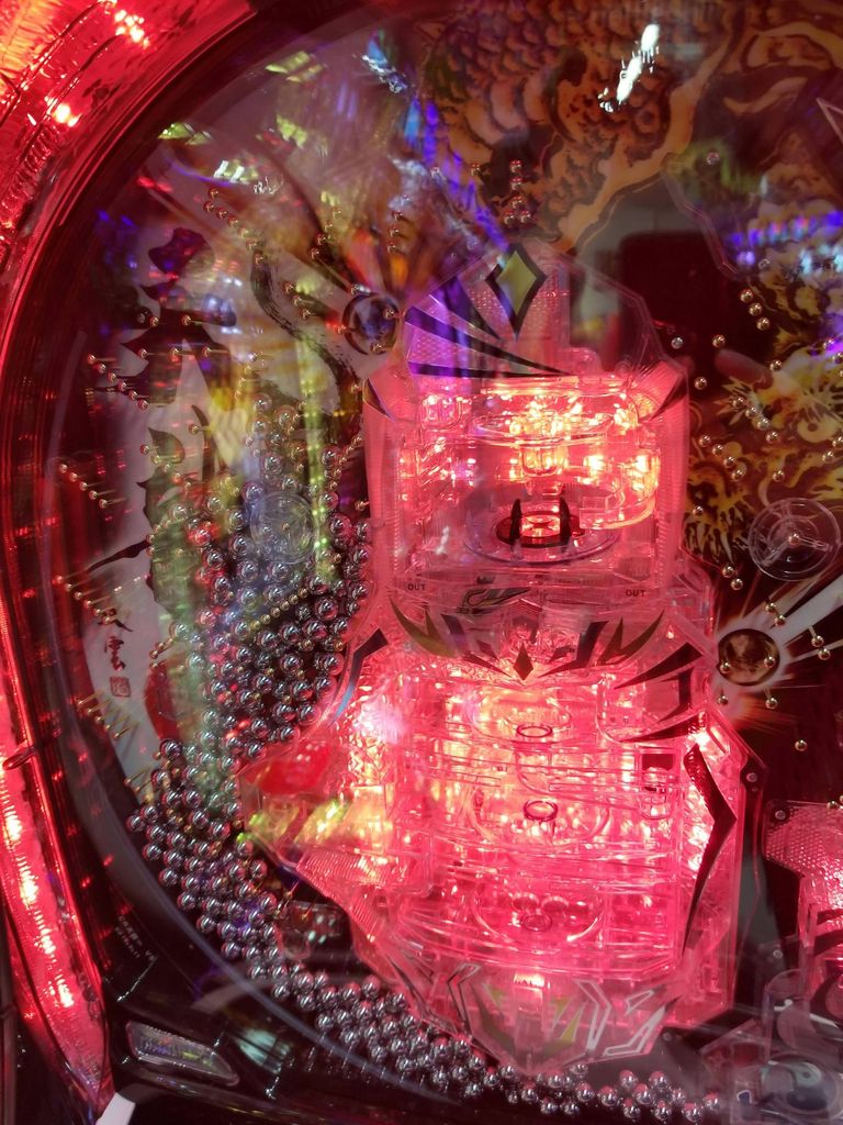 天ルートは玉が飛び込んだ先に「龍の爪」が待ち構える。ここをクリアするには突起回転体を回避し、スライド板が開いている状態で玉が進入する必要有り。