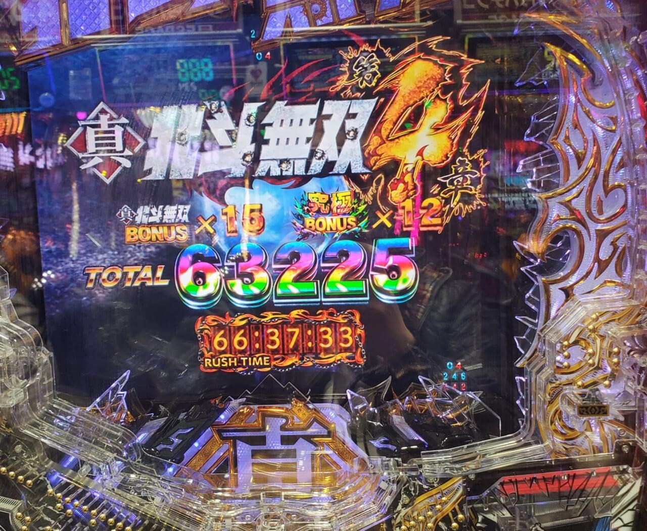 無双連撃❢ 良いねージャギ像が光るとワクワクするねー。ロゴ落ちはチャレンジ失敗したからシラケたねー。右が早過ぎてラッシュをスルーする時は哀しいねー でも皆が言うほど悪い機種じゃないねー。昨日は4回当たりで44000発ゲットしたよ。