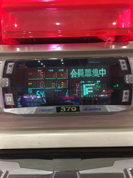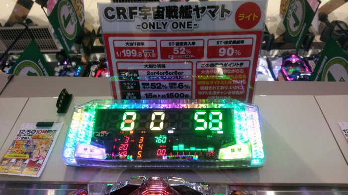 大和で手前に引いて継続リーチ、そこで右の部分が赤の「」来た。やったと思ったら、スーパーリーチもなく終わった。今の「」来たは、なんやったんや