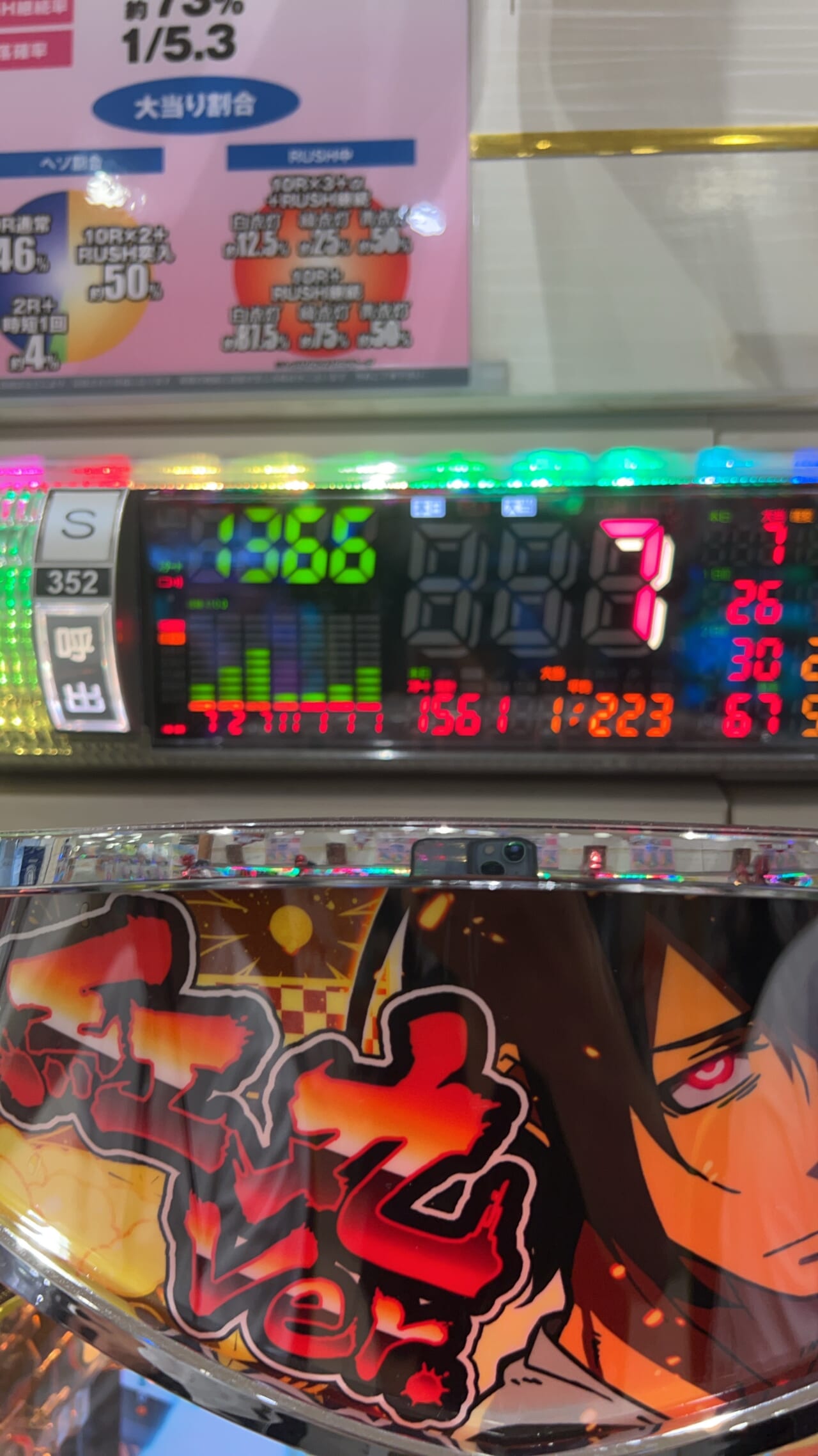 2日間朝から晩まで5000回ぐらい回したけど、他の台打つ気せんね。紅丸やばすぎる!白バレで3回当てたけど全部ラッシュでしたね。Vフラカスタムしててならずでラッシュでした。ラッシュで初回3000もらえるのでかいし、ダンまち相性よかった俺からしたら最高な台です。しばらくは紅丸さんにお世話になります。