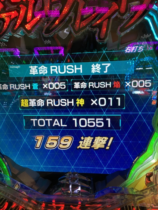 朝一から30回当たってその内革命の刻は半分くらい入った。でもラッシュに入らずじまいで-40k。