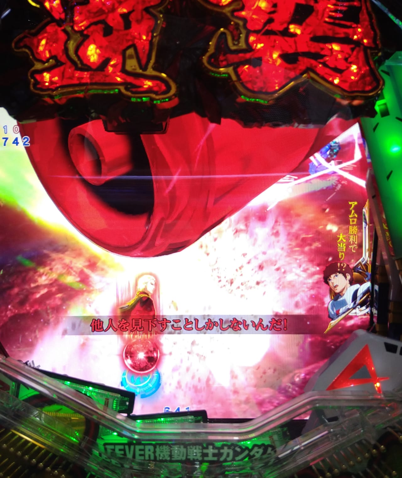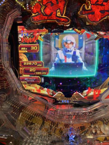オーバー入賞でパネルが昇格。ストーリー構成の4回転となっておりアクシズ落下を阻止すれば大当り!