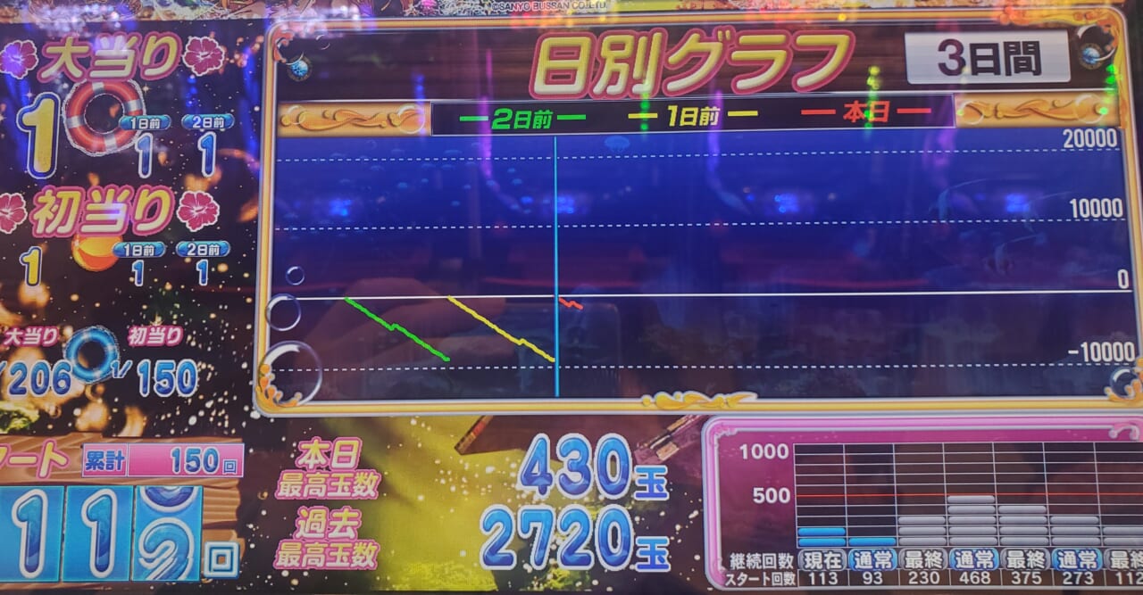 今日1日でいうと仮に終日50回転/1kまわったとしても勝てない展開負け