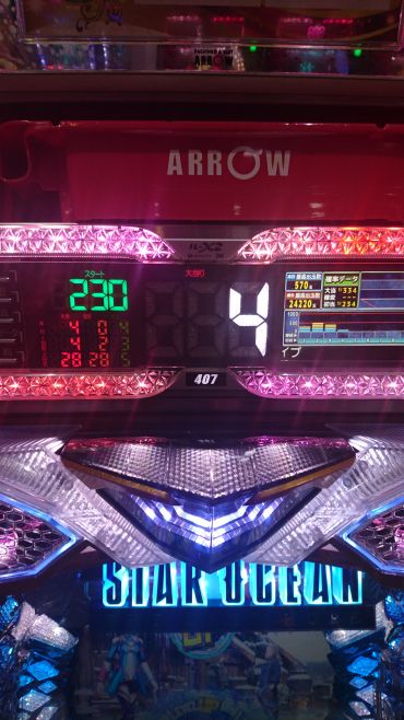 初回大当たりは全て4Rの「スターオーシャンボーナス」!消化後は「ディサイシブバトル」へ。