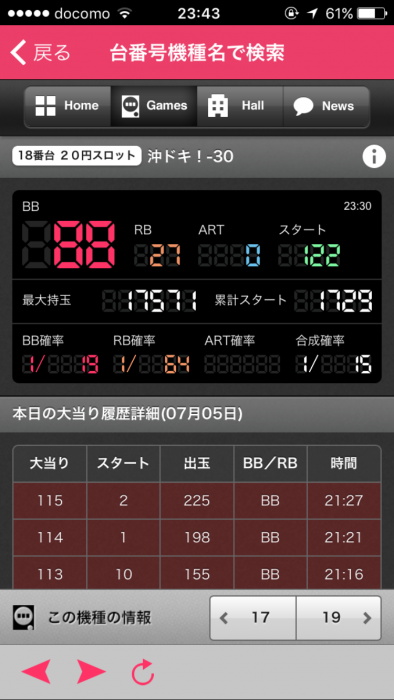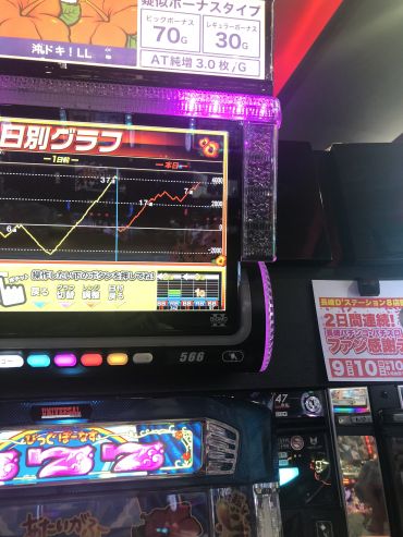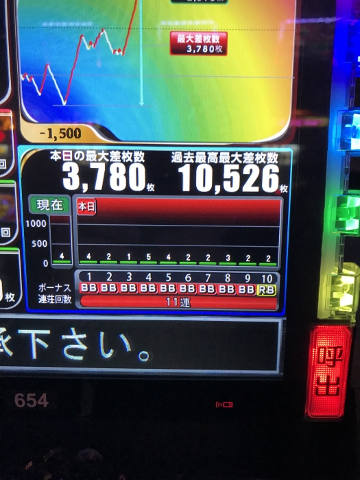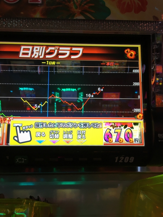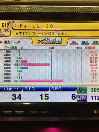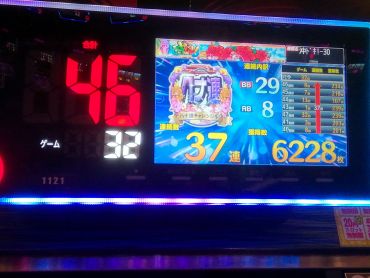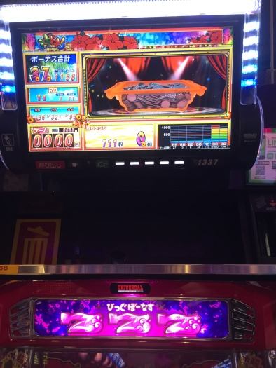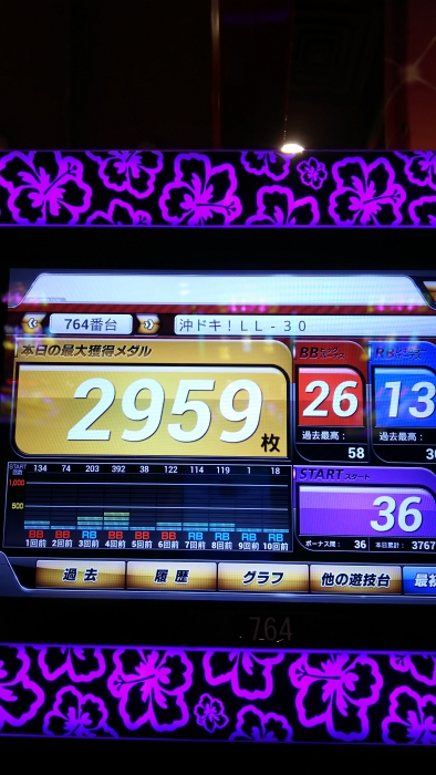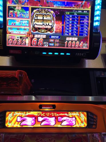 前日、前々日とへこんでる台に朝一4回転で遅れ中段チェリーから超オキドキに入り、