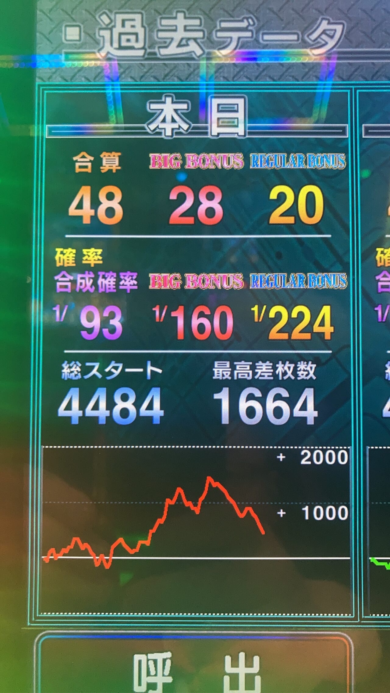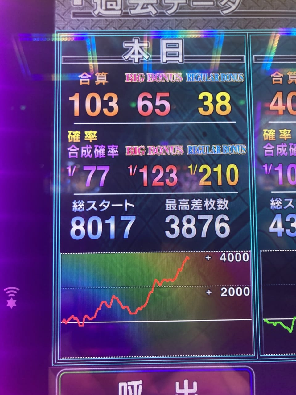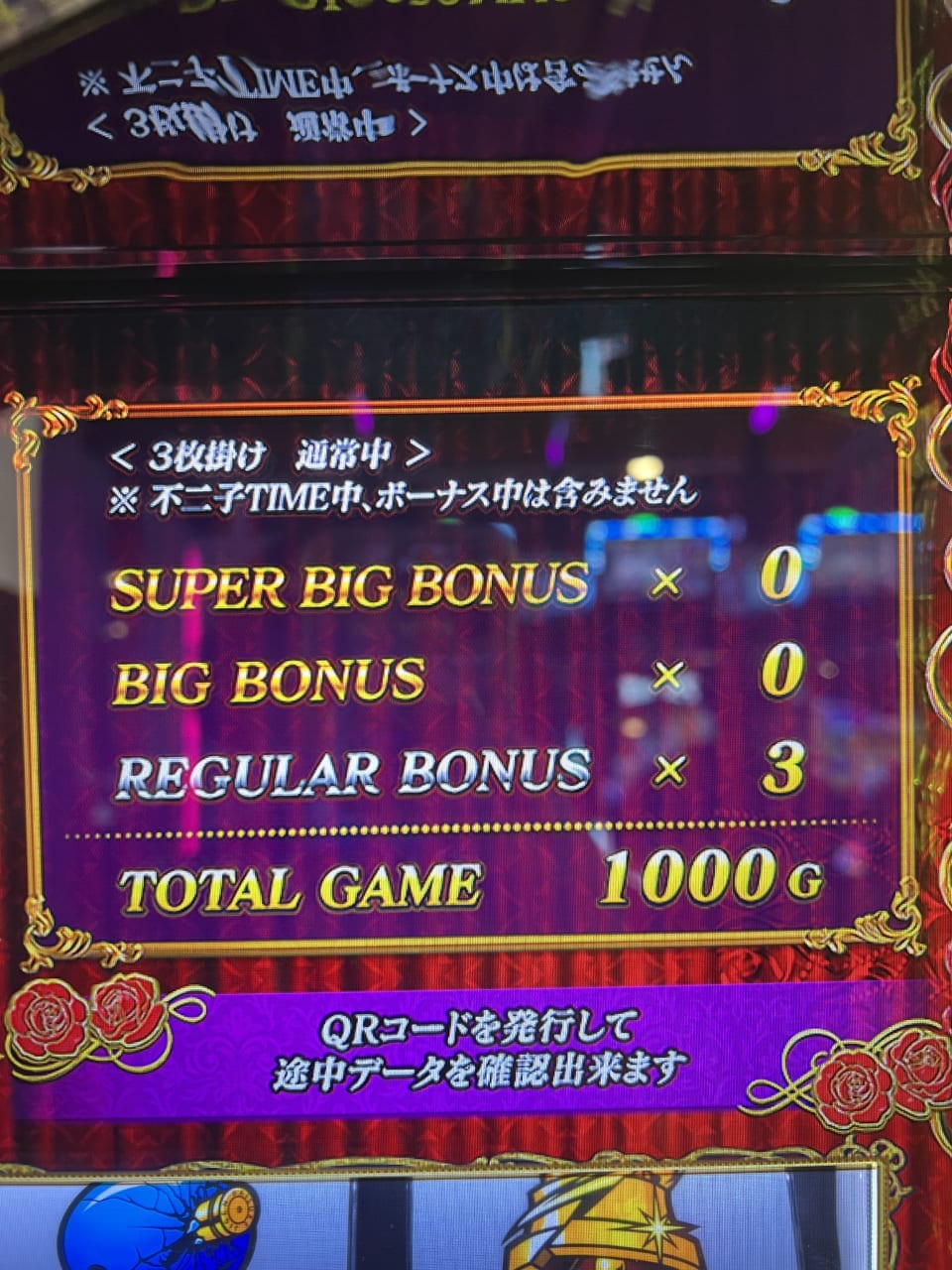 推定設定1で持ち玉最大3500枚ほど出ましたが、設定だけではなくその時の台のやる気なんかもボナの抽選に関係あるんだろうなという印象です