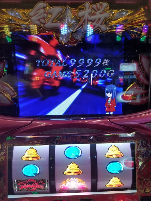 一撃12000枚over。BIG2回(フリーズなし)挟み、途中400G上乗せ含みこまめに乗せて12時から閉店まで。因みに5スロ。ART中にリプレイと外れが多くて疲れるから恐らくもう打たない。
