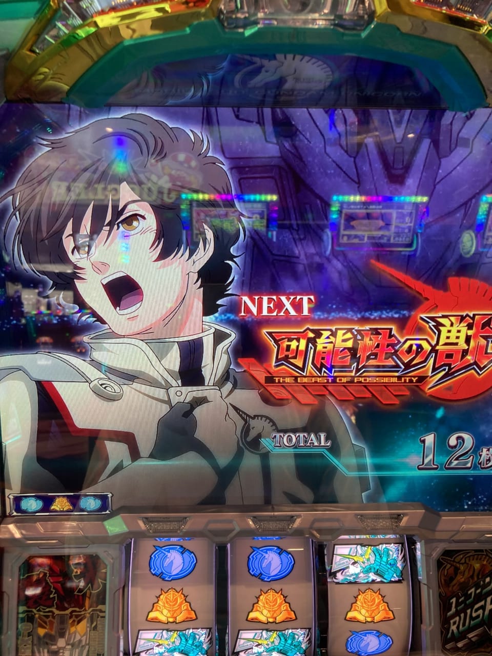 at中何も起きない、可能性の獣は24Gあって駆け抜ける。トータル50G弱で1度も揃ってない。sankyoスロ特有のデキレか?まじでクソだな。まともな台作れねーなら大人しくパチだけ作ってろや。
