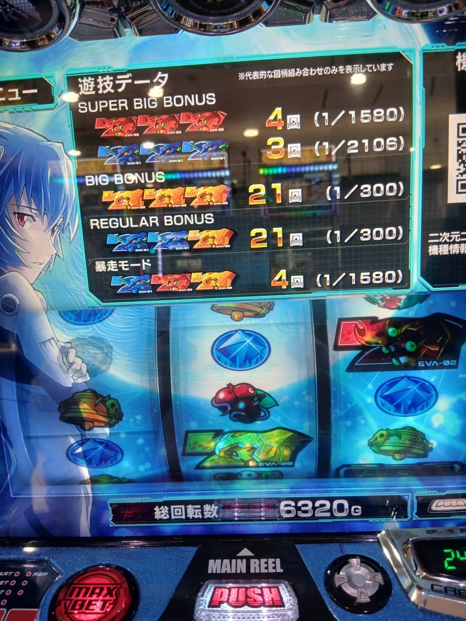 昼頃に設定6確、9000回転回して−500枚。まぁ酷いねこの台、スーパービックなんてなかなか来ない、レギュラーは多い。6の合算がキツすぎるな。パチンコ屋いわく、この台6使っても出ないから据え置き6は普通らしい。確かに納得できました。そもそも6なんてボーナスループしないんだから、ビタ押しチャレンジの意味ないぞ。2度と打つ事ない。