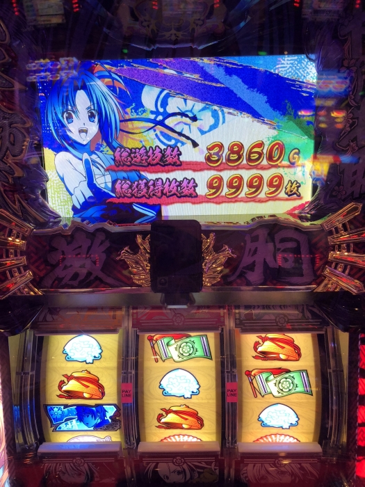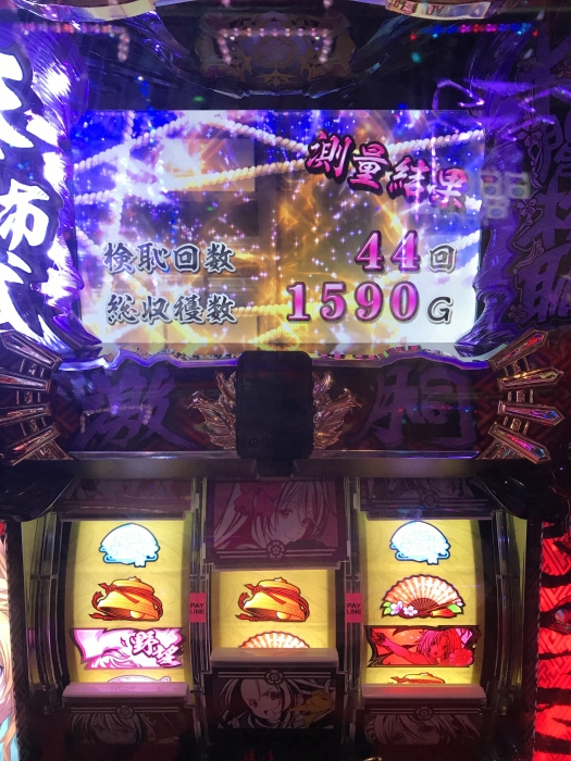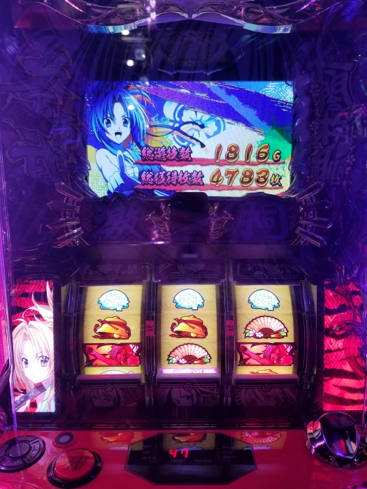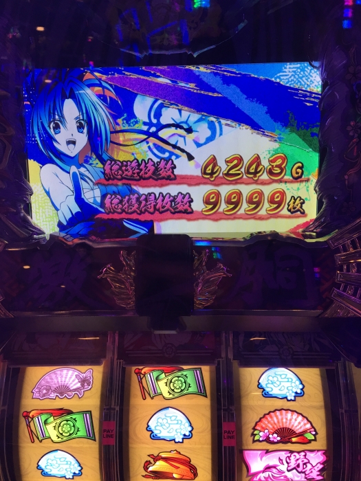 1否定は出たけど、高設定にしてはボナスルー多かったからたぶん中間。ボナ確率は100分の1切ってたからやけにボナ軽い台なんだなぁ、と思ってて調べたらただの引き強だったことがわかった。でもそのおかげで2時間ちょっとでサクッと4000枚弱獲得。上乗せ特化ゾーンは一通り引いたけど、一姫当戦?とかいうのが一番乗ったかな。