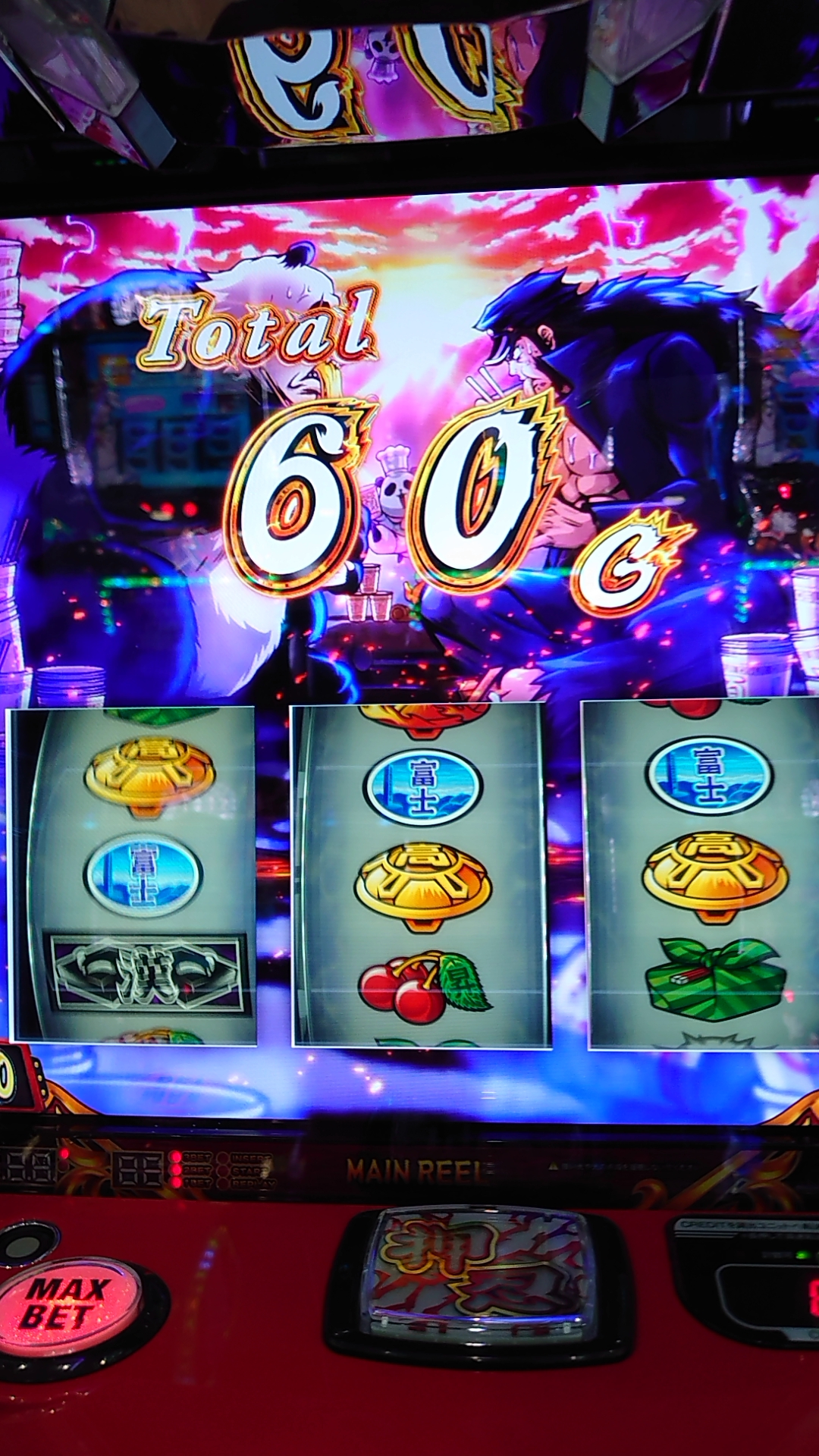 AT基本的に調子良くても1000枚前後なので引き戻しができてAT伸ばせればエンディングには行く。全ては豪超閣で勝ち続けることと強レア役の引き次第。