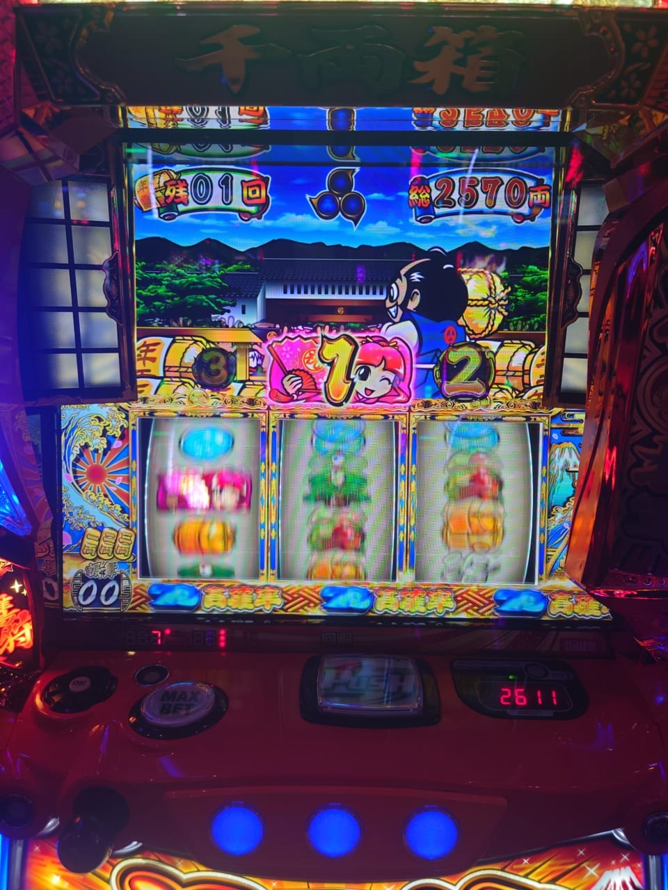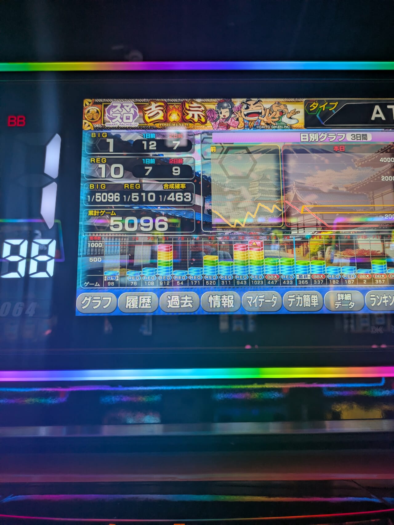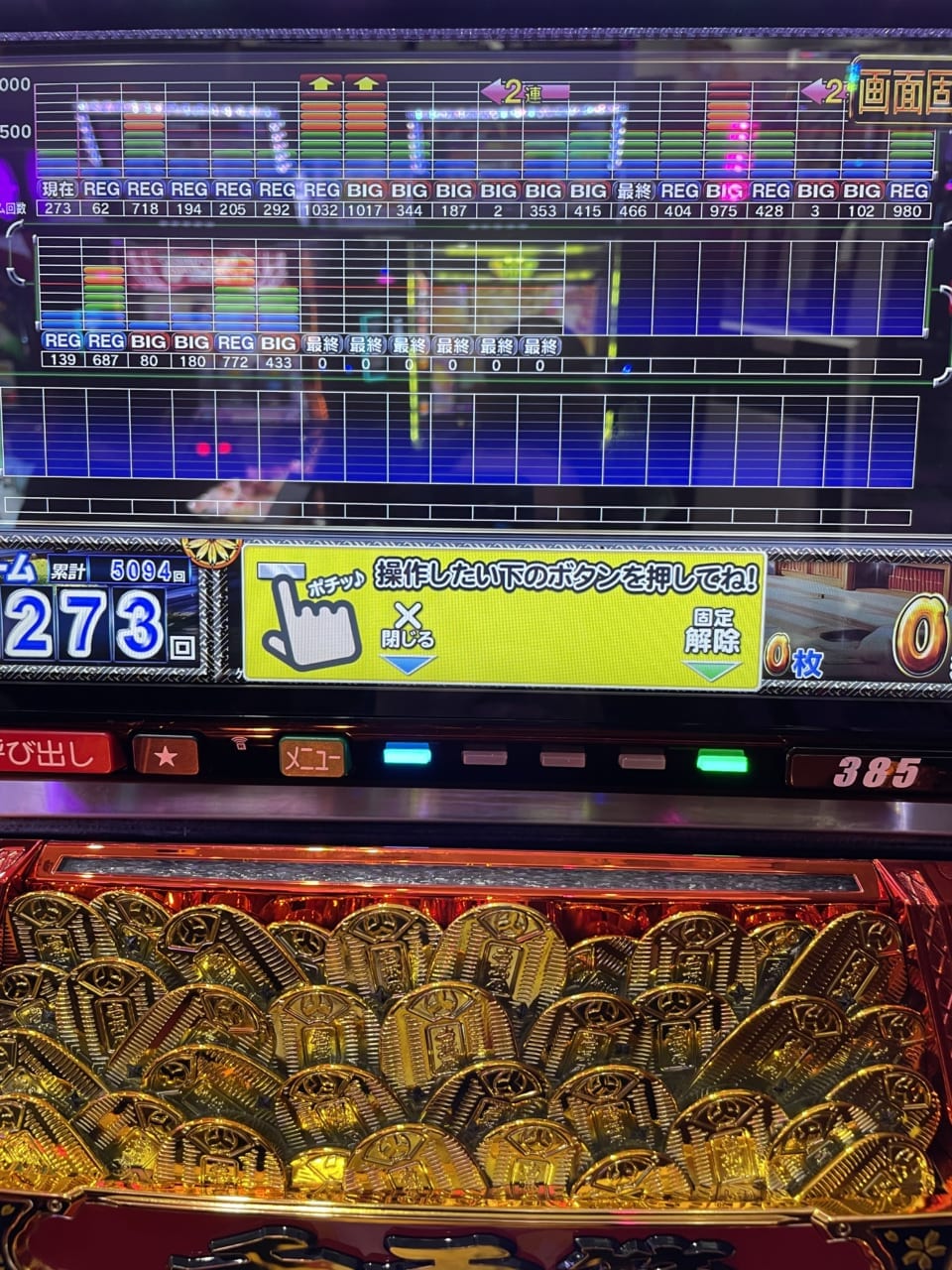 この台、999GでREG72枚獲得って考えると999G×2−レア役のポイント加算=REG×2=144枚になるから初代吉宗の1921GでREG128枚獲得した時と同じ結果になるよね?笑
