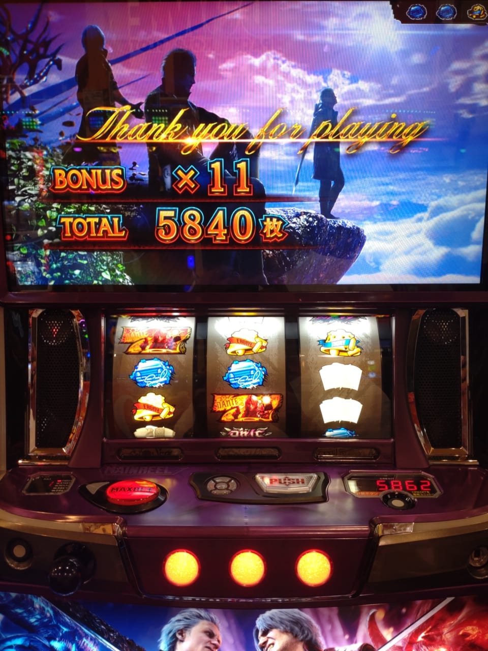 500Gのボーナスハズレた後、謎に煽り発生してダンテcz出てきた。出目はほぼ見てない。