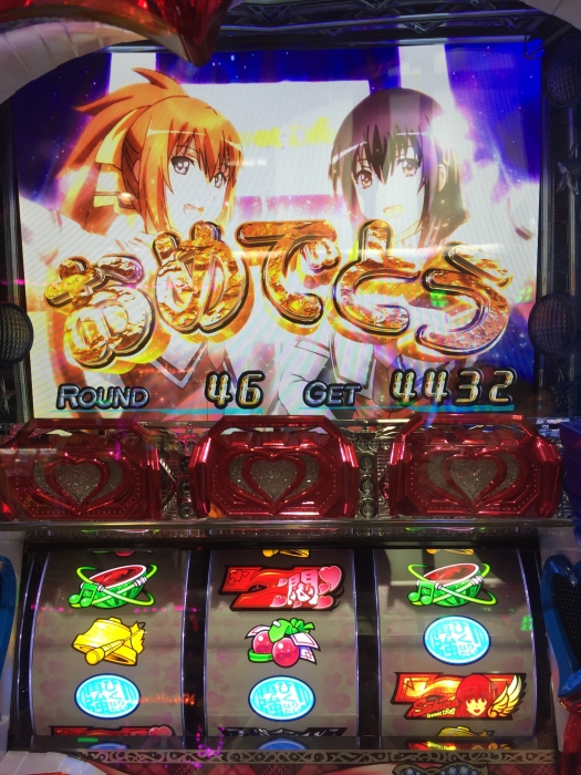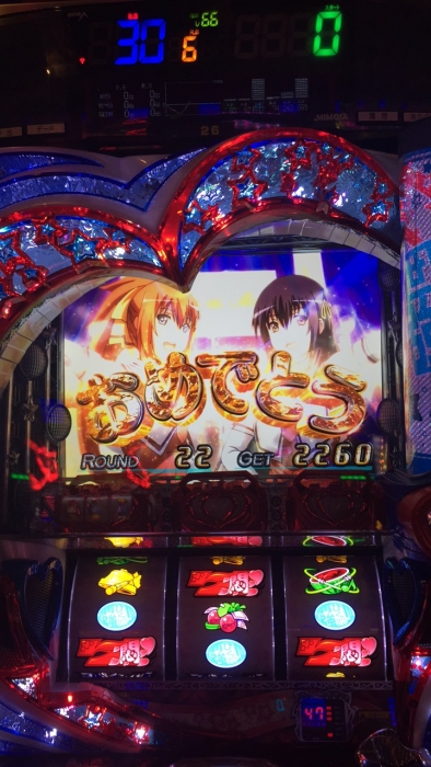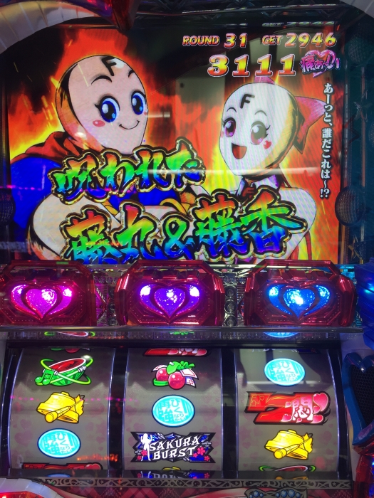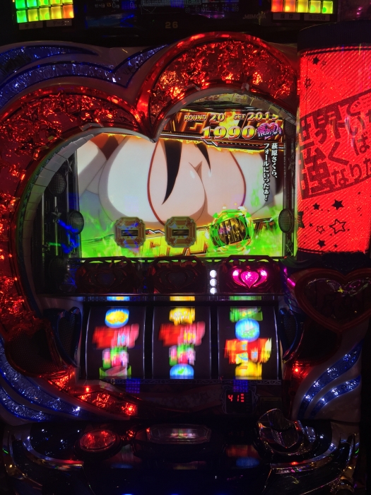 よく分からないまま当たり7が8回揃って800スタート。これが多いのか少ないのか分からなかったんだけど、いきなり200超えの攻撃くらい続けて300超え。なんだこれ、終わりじゃんと思ってたら、なんとか500枚まで続きました。慶次のリプ連で即終了みたいなのが嫌いで打ってませんでしたが、これはそれの上を行きますね。ベルでも攻撃しない。レア役でも攻撃しない。寧ろ攻撃される。そして負けるみたいなスロットとは思えない子役無視の演出。で、痛いは対戦終わるごとにリセットなるんですね。2000スタートで対戦相手が藤丸君。3Gで試合終わりました。で、痛いリセット。痛い台だ。最終的には1000枚交換しましたが、ここまで酷いデキレは無理だわ。なぜいつも空席なのかが解った気がします。良かったのは風が出ることぐらいですかね。
