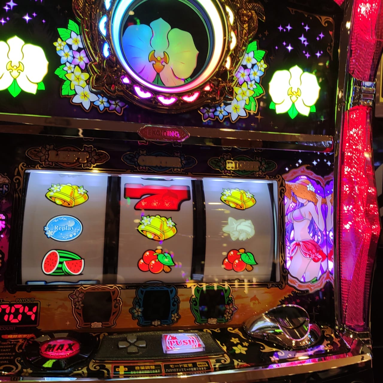 今日、6連チャン後、初めてリングの中のゆりがいろんな色に交互に光ってたので連チャンだと思ったら、連チャンしなかった