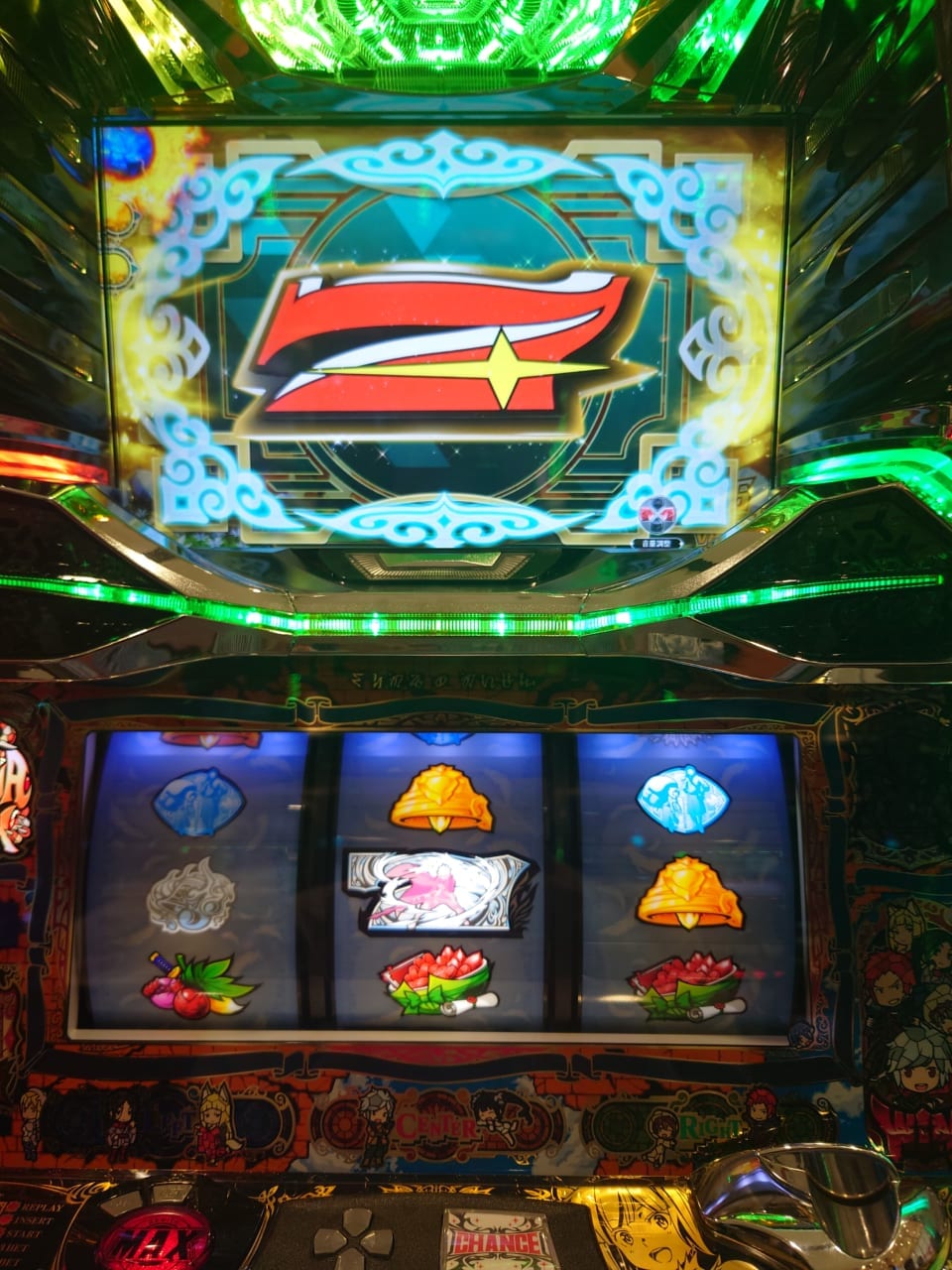 たぶん設定4(246枚獲得と通常ボナ終了画面でアイズ)を6000Gほど回しましたが、一時2000枚弱くらいまで行ったものの途中からボーナス引けずCZやれずでズルズル飲まれて400枚でフィニッシュ。