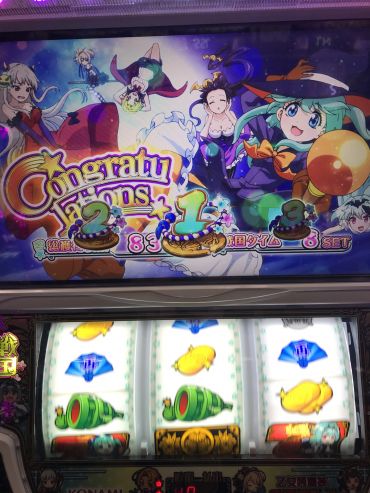 あと、AT開始画面、半蔵ちゃん出て、偶数かーと思ってたら、巫女3人来てあれ?っと思ってたら千姫来てやっぱりーってことがあったです。1セット目飛ばしがちですが、開始画面は確認したほうが良さそうですね〜。