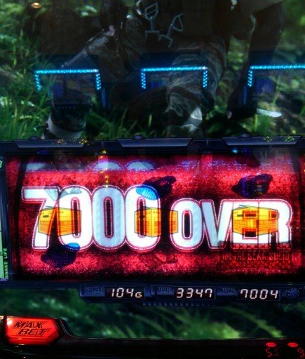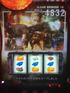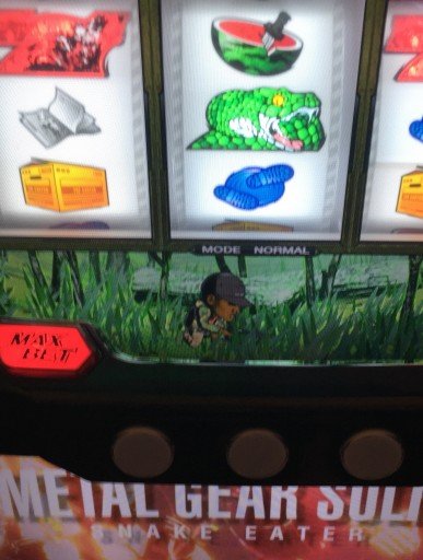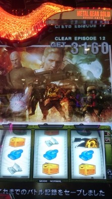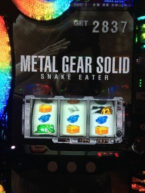先日、ゲームでも大好きなメタルギア新台で、こんなプレミアがでました。潜入ミッション→4ゲーム目にバイクで女が乱入→サバイブミッション→最終ゲーム→デカレインボープッシュ→ART準備中の時、金7!BigBOSSTime×3で、10セット勝利確定して、エンディングまで行きました。他の方の投稿にもあるように、金7は、エンディング濃厚?で、3000枚位が期待値なんですかね。