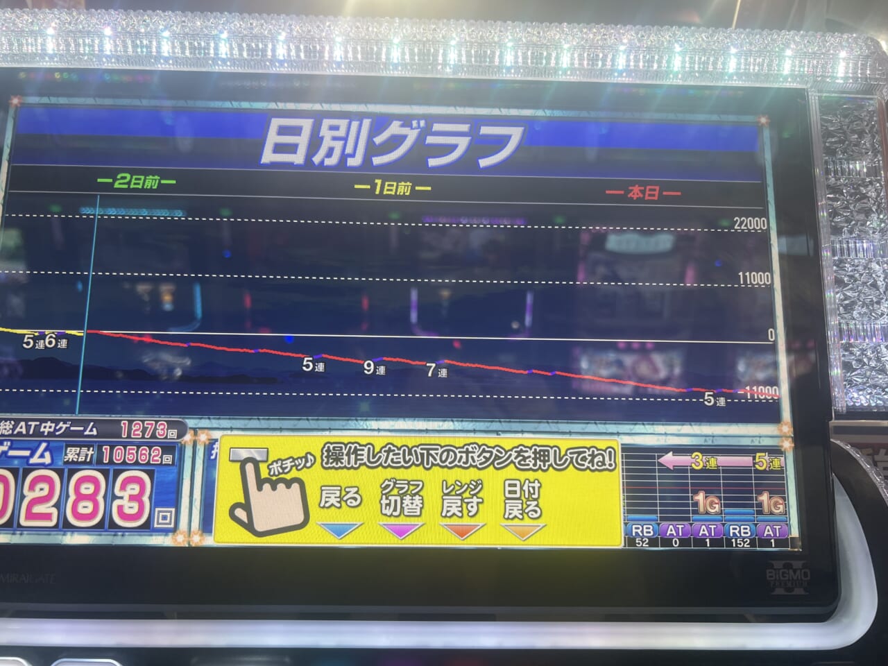 ATで残りg数消化したら差枚が+1500枚になるあたりから急に挙動が弱くなりすぎて、ここまで露骨にやんのかって呆れながら消化しました