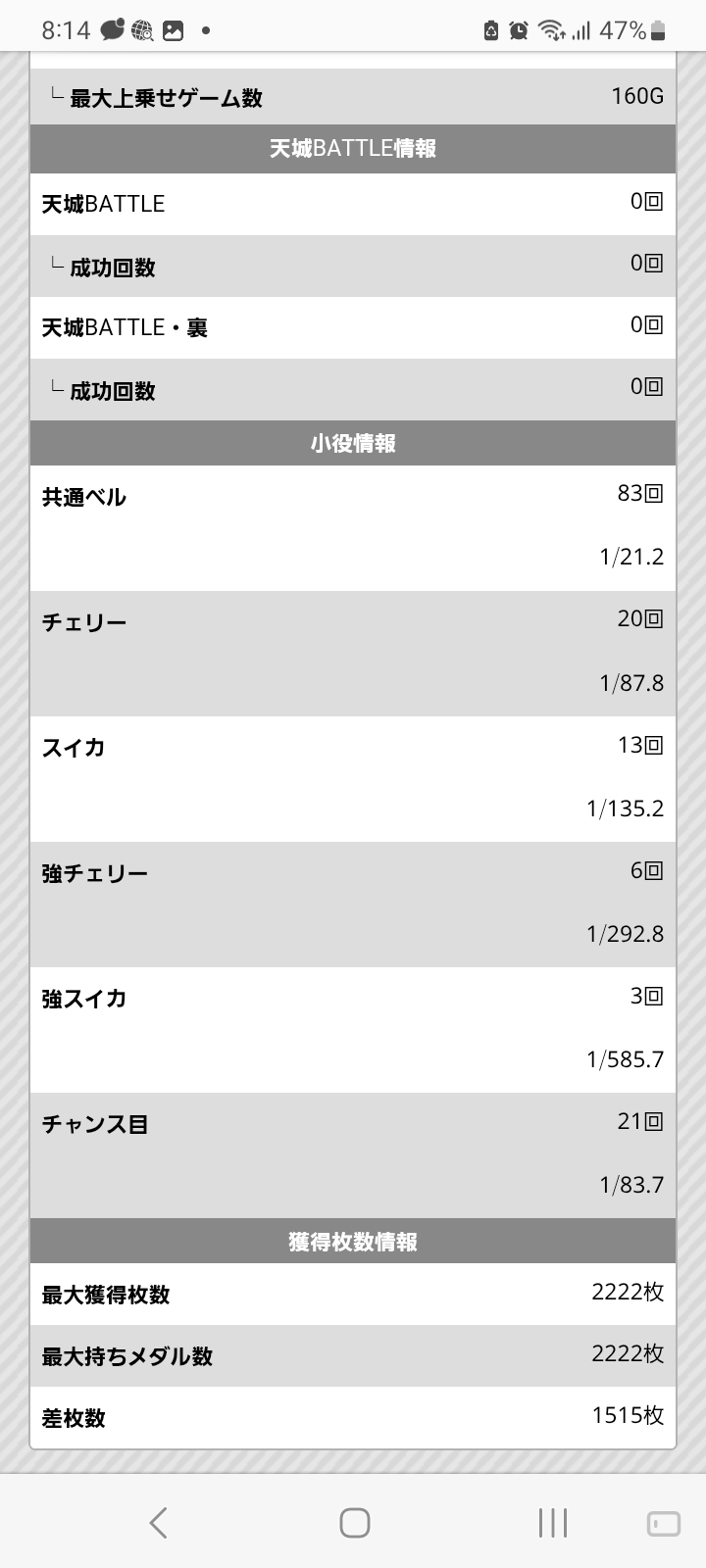 残り3回で天井になった途端すべて天井。その途中弱チェ夕方から強チェ2回チャンス目1回明石1回を13g間で引いて当たらなかった時、ああそういう……ってなったよね。