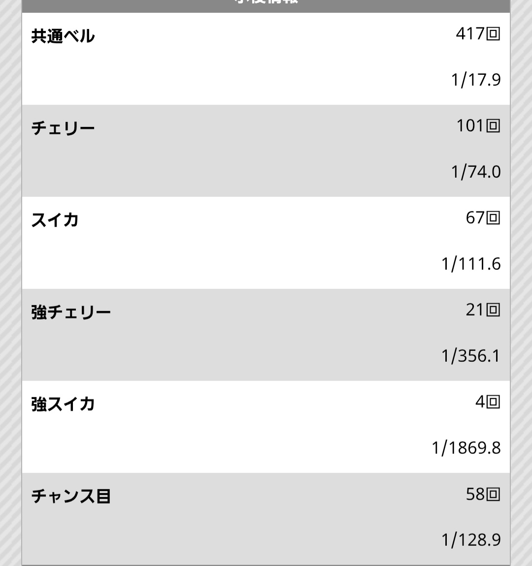 明石チャンス中にチャメで脱出せよ。はずれ2000G回して強チェリー、強スイカ0なんですが