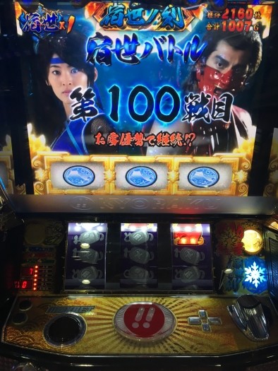 新台なのに誰も座らないのはヤバイ台なんだろうなと感じつつ座ってしばらくしたら当たり500枚ぐらいになってつまらないと感じつつ新台だからずっと打っていたらフリーズみたいなのを引き宿世ノ刻を70セット続き2000枚弱。