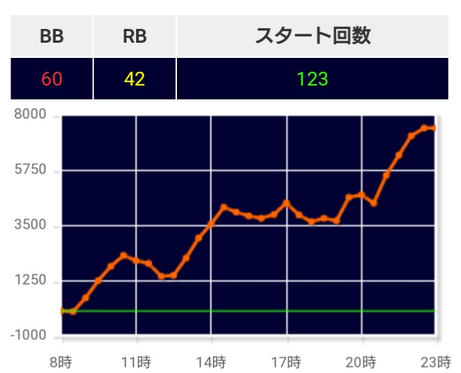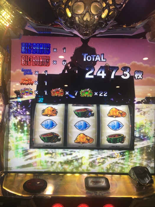ART準備中にHR入って80乗せ。ART始まって間もなく狙え演出からSHR入って5回目辺りからの上乗せが+g扱い。ボナが青七に偏ってくれたおかげで伸びました。ART終了後、10数ゲームでスカルから再びART入りましたが一回ロベルタ倒して2セット、100枚で終了…もう打たないと思います。戦コレ3に帰ります。