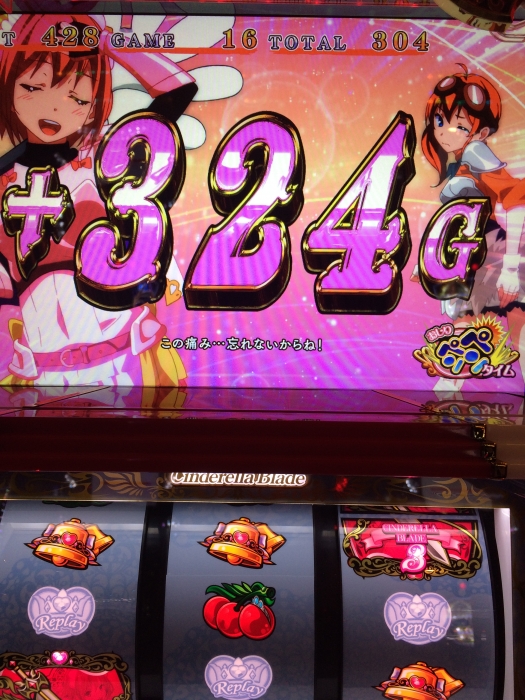 何も恩恵ないお尻ぺんぺんだと2の時のように30Gとかもありますが、恩恵があれば一気に事故れる可能性増えます。300乗せを数回みたので。一回乗せれれば後はイケイケでなんとかなりますね。