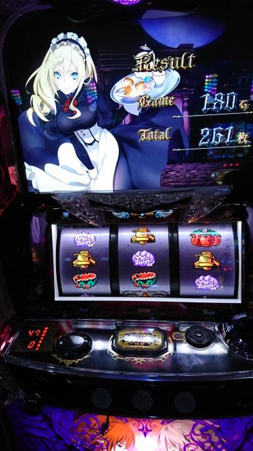 恐らくARTゲーム数900のリミッターがついてますね。300Gの上乗せ2回含み消化と残りG数合わせて860Gでオーブ4つで上乗せが全く来なくなりました。白バー引いても上乗せ0!オーブが40G上乗せで900G。ビッグ1回で1300枚でした。もう一回ビッグ引いてたら、ちょうど1500枚ですね。演出は良い。ゲーム性も面白いと思う。純増少なく、ボーナス重い。出て来る時代が良かったら面白い台になってたと思います。スロットの終焉を感じさせられた台でした。