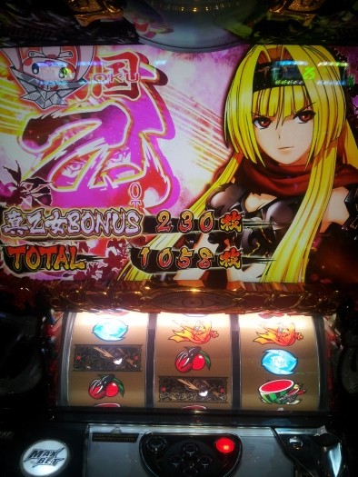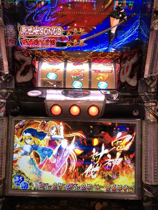 先程のバー揃いからのルーレットは、乙女ボーナスだったけど7を狙え!!でダメ元