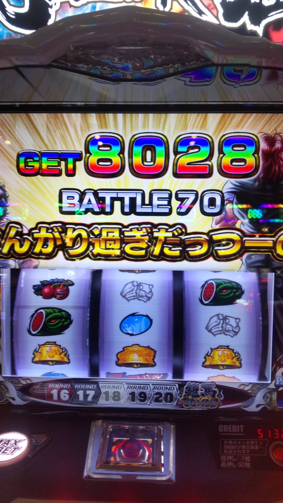 結果的にはバキバキアルティメットを数回通してバトル100回以上で13500枚くらいでした。