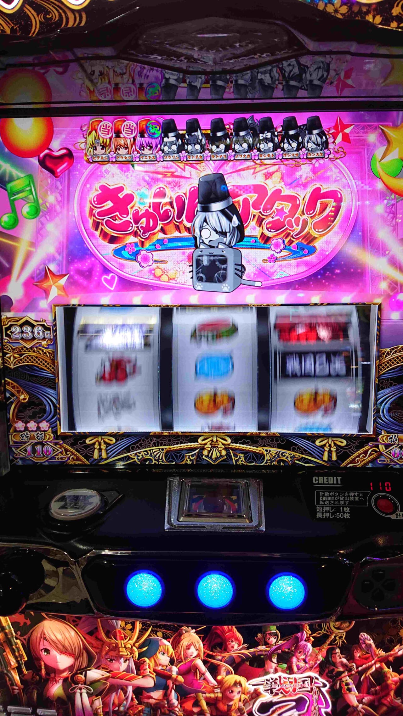 乙女アタックは10戦が展開し、1度でも勝利すれば戦国乙女BONUSに当選。バトルは完走型となっており、勝利した分だけ戦国乙女BONUSを獲得できる。