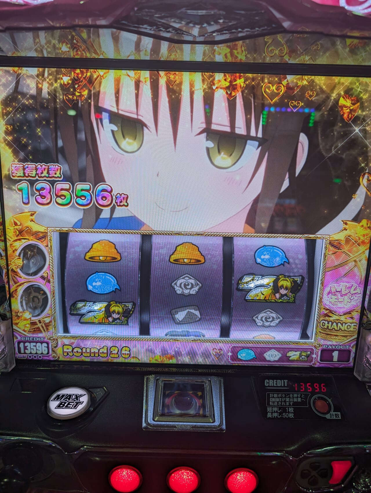 2ラウンド目で謎にハーレム行って、500枚のボーナスでST入ったらチャンス目どころかリプレイすら引けず駆け抜け終了…