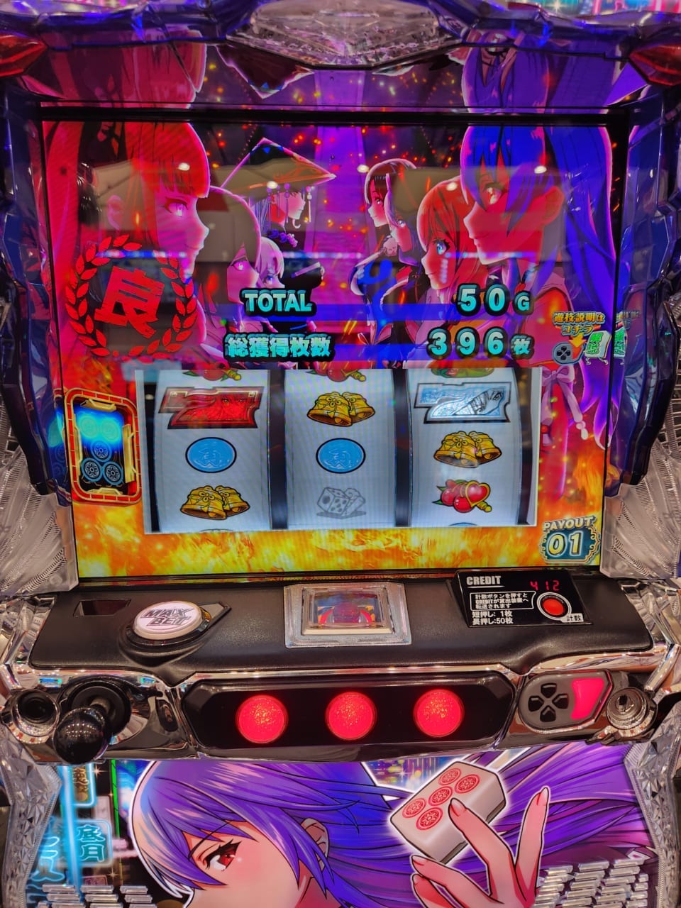 AT中ピンズカウンター高確入ったがそこから全く小山ベルが出なくなり最終ジャッジ前にようやくピンズカウンターが溜まったがカットインが出ず通常に戻ってから発動。カウンター高確のままCZも全然勝てず。通常時強レア役空気。700回転で再度AT入りなめたけ、強チェリー引くが上乗せ何もなし。また最終ジャッジ時カウンターが溜まり強レア役引くが朱雀に勝てず。カウンター高確のままだが全然小山ベルが出なくなり400ゲームで途中辞めしました。たぶん高設定しか勝てない。