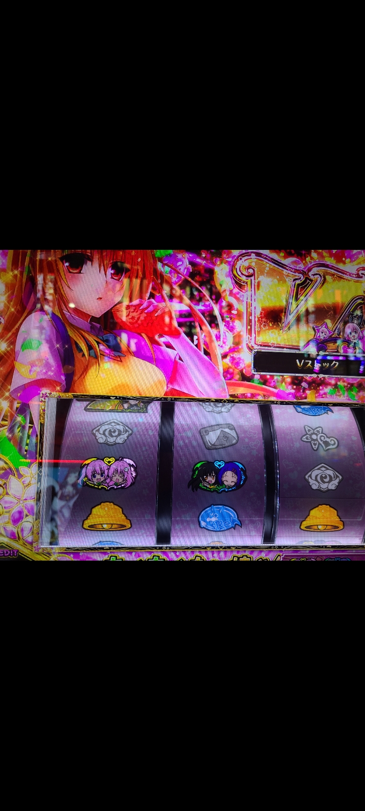 エピボから入って、対応役左チャ目3回右チャ目1回ベル1回→全ハズレでVスト放出100枚→対応中チャ目2回右チャ目1回ベル1回→ハズレ終了