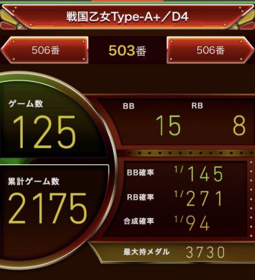 戦国乙女はスロットもパチンコも好きなんで打つけど、6でもBIG確率1/300越えるのは正直キツイと思う