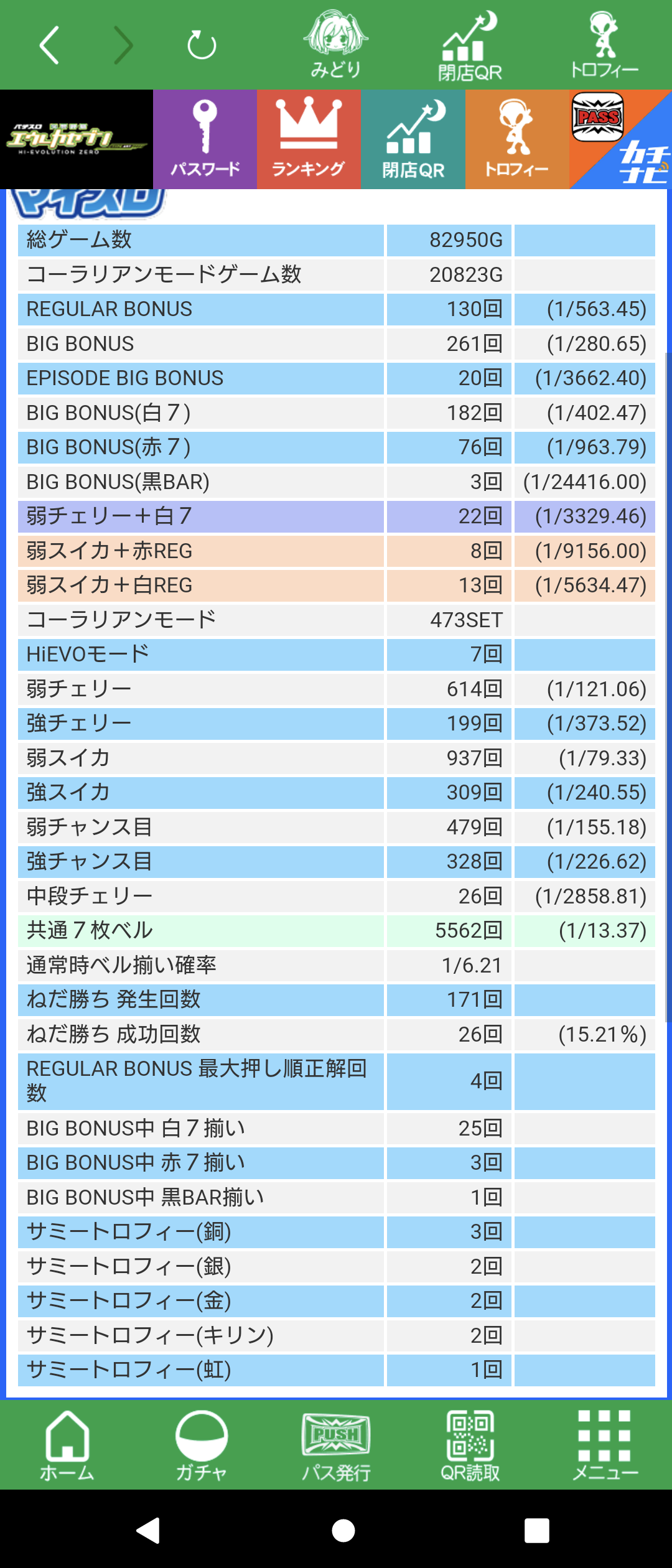 3万ゲームほど遊戯してバーbig1回しか引けてないんですが、流石に引き弱ですよね。8192くらいと予想してますが、余りにも見かけないので。