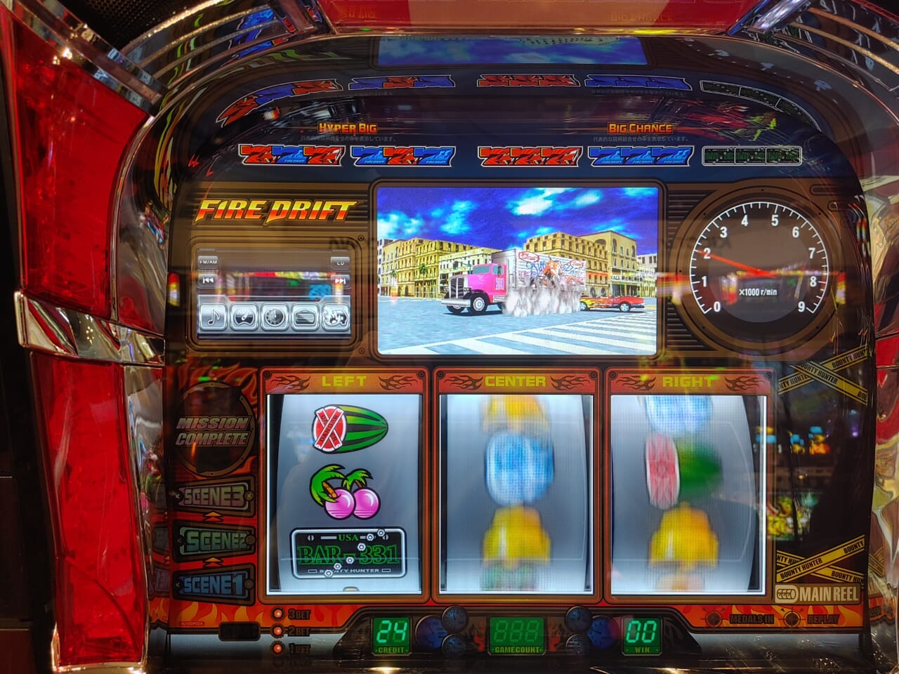 何ですか、あのスイカ揃いに派手な音鳴って画面端が燃えて何も無し、何ですか?あれ。