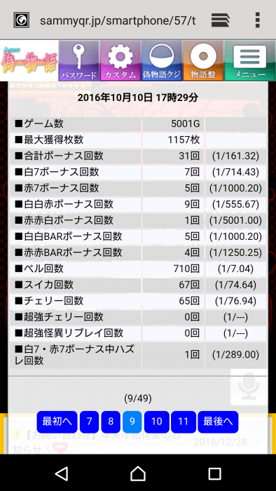 朝イチ最初の同色ビックで初めて引きました。2回目と3回目のビックで貝木がでてボーナス後、偶数か、いや奇数かでたから5だと思う
