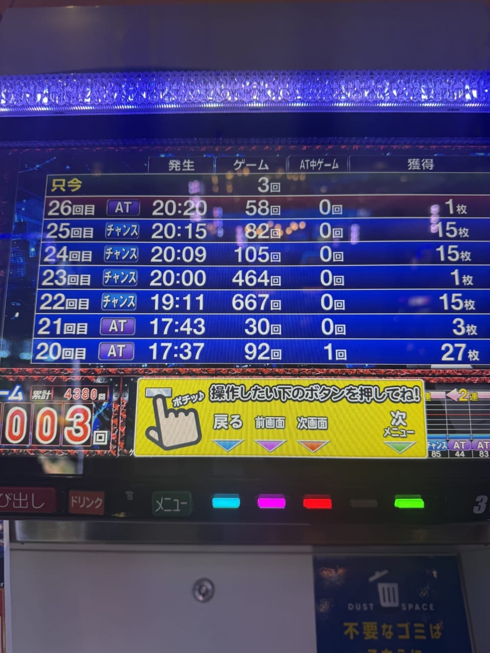 ポイント表示、やたら大きいわけだ。上位に行くことは一度もなく、2000枚前後をずーっとウロウロ。ただただ思い出はポイントの数字を見つめてただけ。周期とポイントが目まぐるしく変わっていくが、AT中のレア役なんかポイントは欲しいがメダルもくれよ。持たないんだよ、、、ともかく2択ってデキレと思わないとレバーで決まるより、お前が悪いって言われてる気がしてストレスえぐいくせに爆発させられそうな仕組みがまるでないから話にならない。