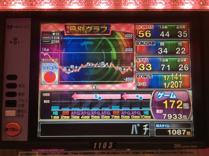 本日同じ台を打ちましたが、昨日とは全く違う挙動でした。