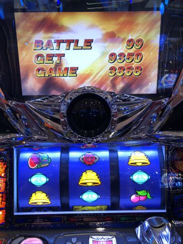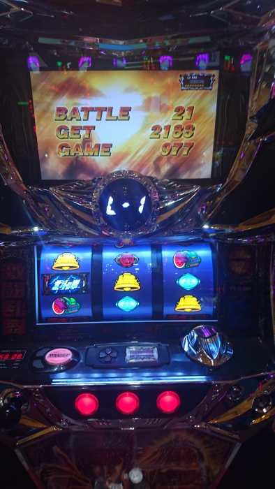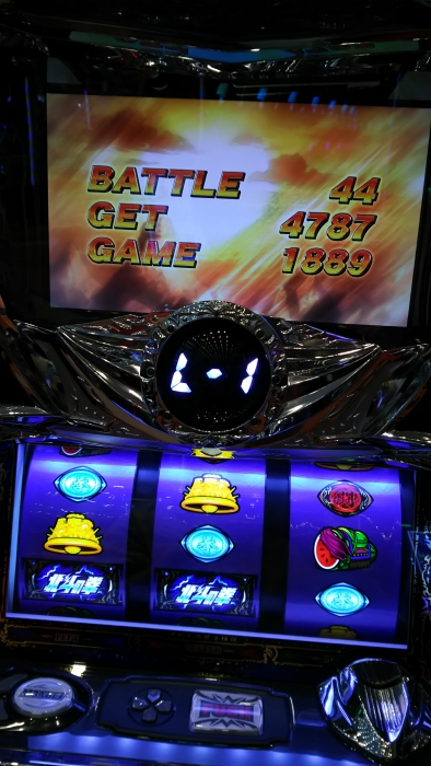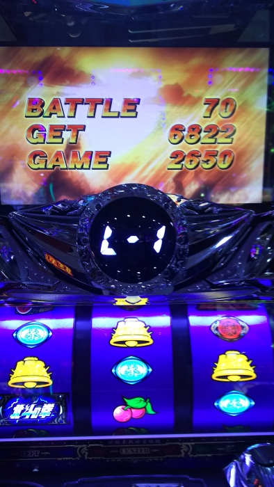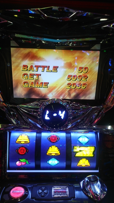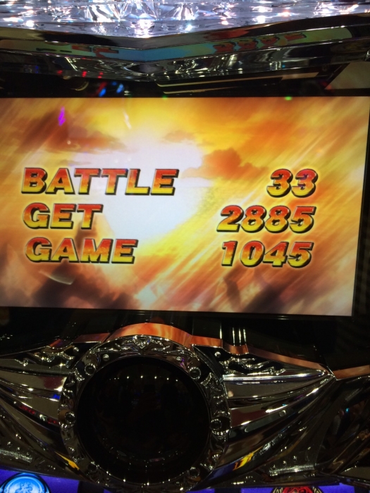新装開店日に初当たり2回目に激闘乱舞が30連し、エンディングが発生、3300枚出ました。