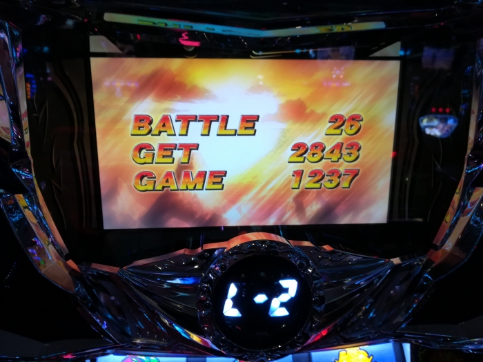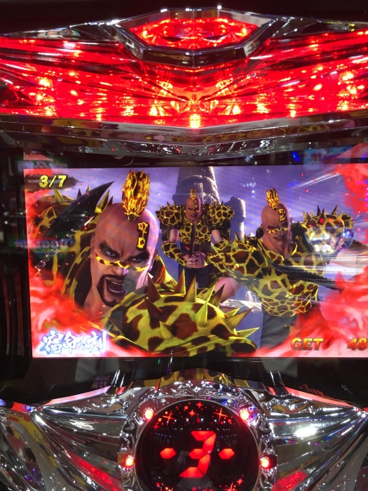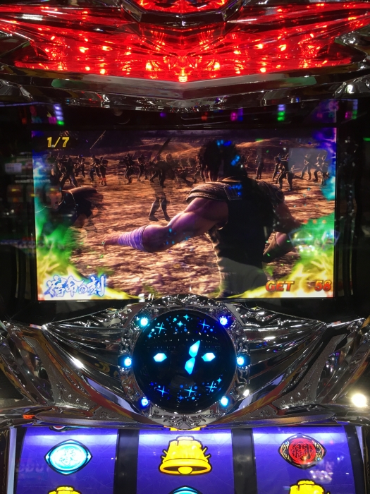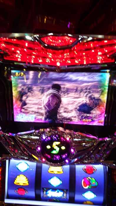 となりの台は激闘乱舞にすぐ入り、3000枚ぐらい一撃で出し、おかしいほど劇闘を出して、終了後に数回でレインボー北斗揃いで終わらないモードに。